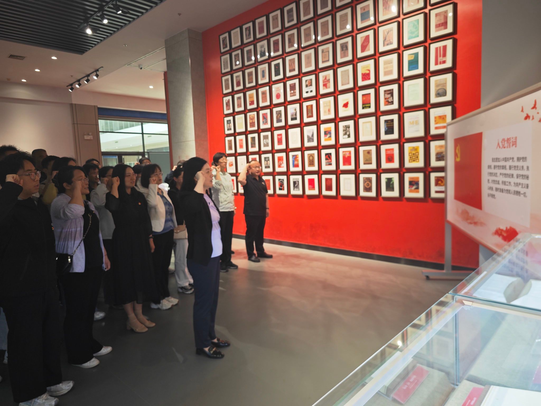 在展馆讲解员的引导下,党员们依次观摩了“宣言问世”“大道行远”“日出东方”“砥砺奋进”和“伟大复兴”五个部分,感悟真理光辉,汲取精神力量。展馆内陈列了多个版本的《共产党宣言》珍贵文献、中国共产党成立初期的重要历史图片与实物,以及中国共产党人践行初心使命的生动故事。通过一幅幅图片、一件件文物,师生党员们系统了解了《共产党宣言》的诞生背景、传播历程及其对中国革命和建设的深远影响,深刻感悟马克思主义真理力量与中国化时代化的伟大实践成就。在鲜红的党旗下,全体党员庄严举起右拳,重温入党誓词。铿锵有力的誓言回响在展馆内,彰显了新时代共产党员的坚定信念与责任担当。师生党员还参观了山东交通银河娱乐场