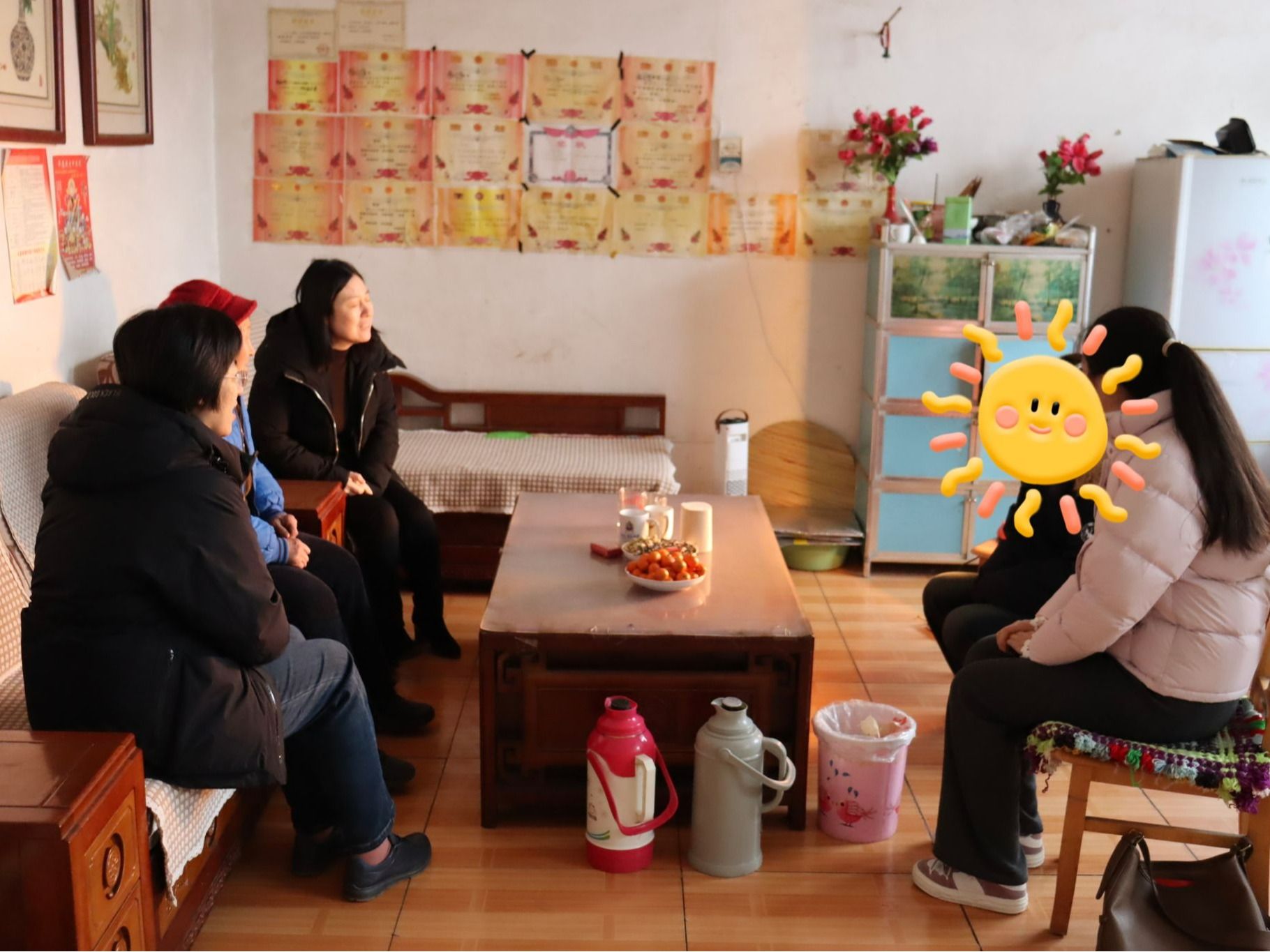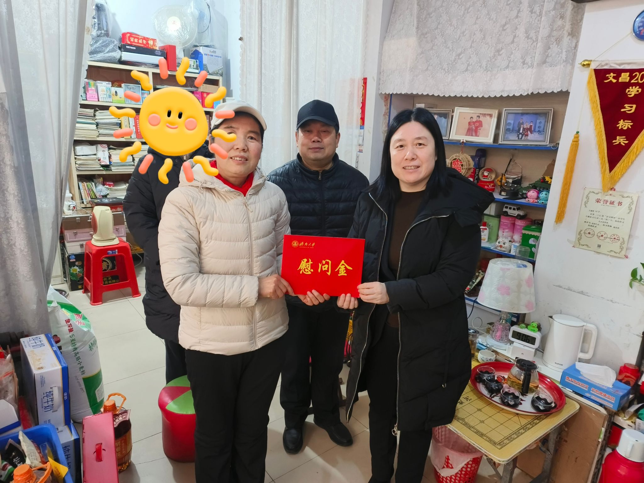 老师与学生及家人亲切交流,细致了解其家庭实际困难与需求。该生家庭为脱贫享受政策户,成长环境较为特殊,主要依靠亲属照料和政府补助生活。老师们细致询问其学业与生活状况,肯定其在校获得的竞赛成绩,并送上银河娱乐场
