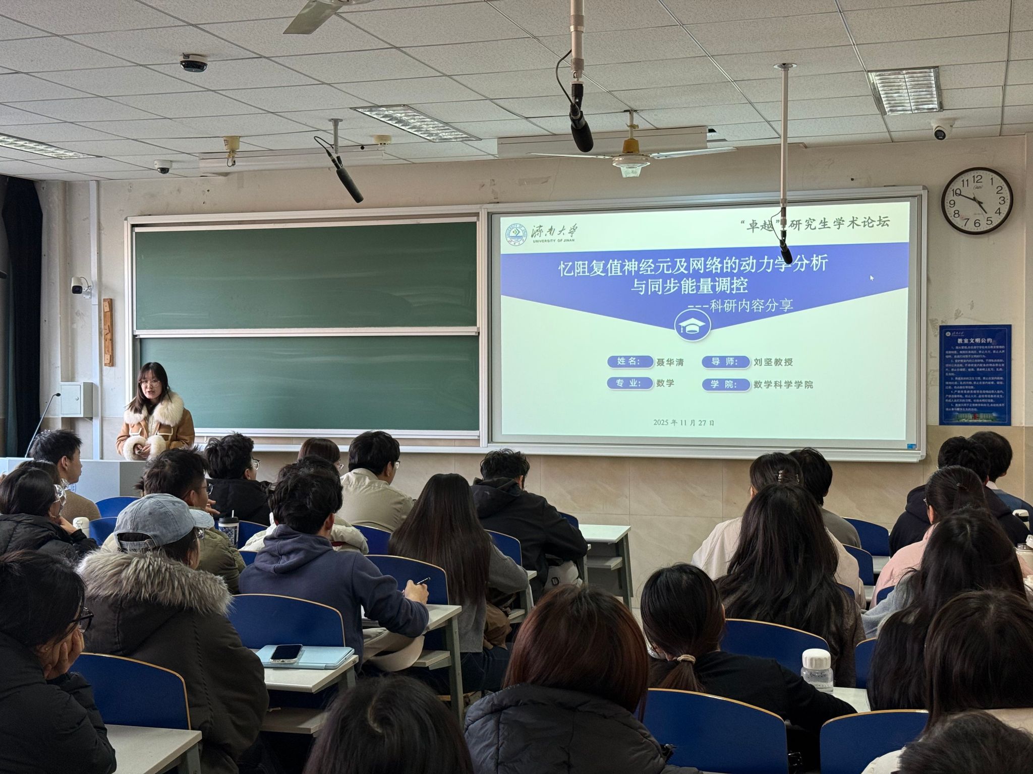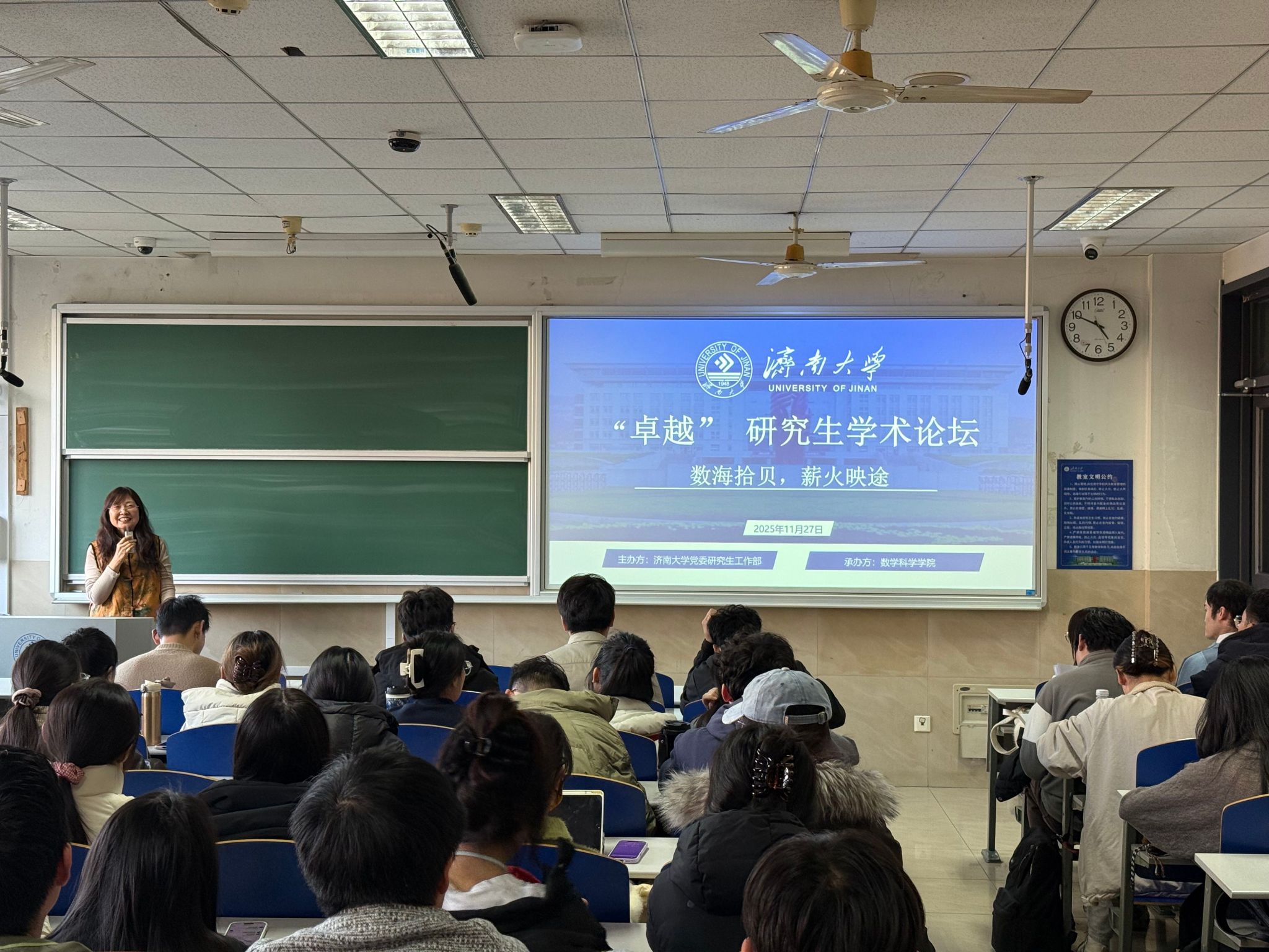“数海拾贝,薪火映途”研究生学术论坛暨2025年济南大学“卓越”研究生分论坛成功举办。本次论坛邀请国家奖学金获得者聂华清、张宪哲两位同学,分享了他们在研究生阶段开展科学研究的心得与经验,并为学弟学妹提供了宝贵建议。刘坚教授应邀出席,对两位同学的分享作了精彩点评,同时结合自身指导研究生的经历,与在场同学进行了深入交流。