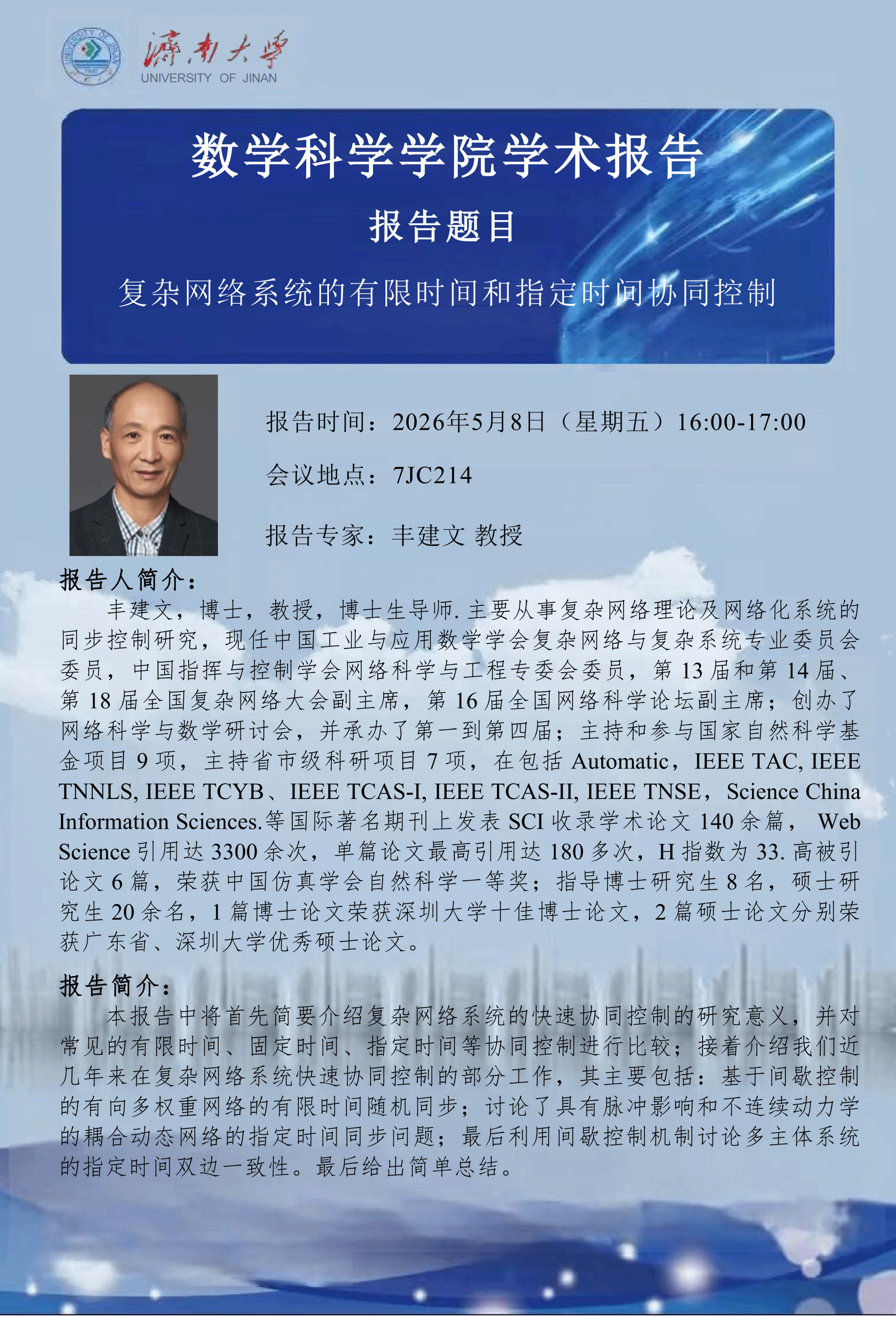 银河娱乐场 学术报告:复杂网络系统的有限时间和指定时间协同控制